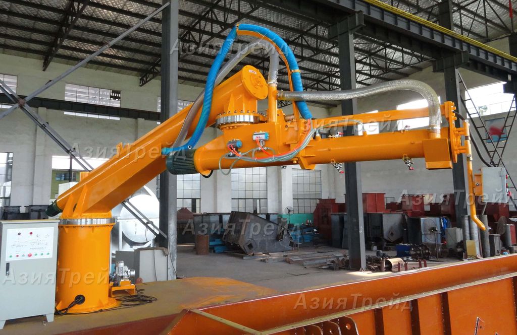 | 1 Колонна 2 Контур подачи жидких материалов 3 Подающий рукав 4 Подшипник 5 Смешивающий рукав 6 Дисплей 7 Шкаф управления 8 Технический люк |