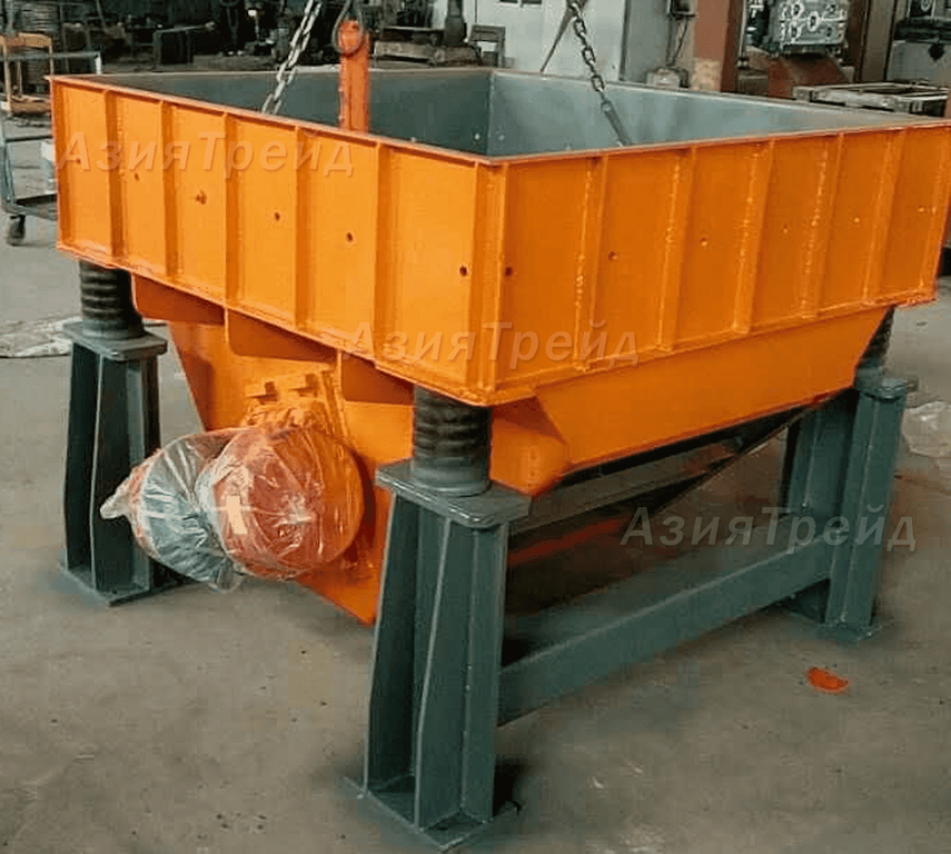 Корпус машины представляет собой сварную конструкцию, выполненную из термообработанной марганцовистой стали. Рабочая конструкция выбивной машины с закрепленными на ней асинхронными вибродвигателями устанавливается на противоположно расположенные ряды высокопрочных пружин, обеспечивающих колебательную кинематику движения и как следствие разрушения форм. В зависимости от веса и размеров песчаных форм, можно предусмотреть установку двух или четырех выбивных решеток.